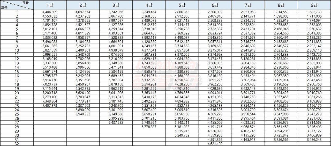 교사 만호봉 없음 호봉 상승률 감소도 없는 개사기 본봉표