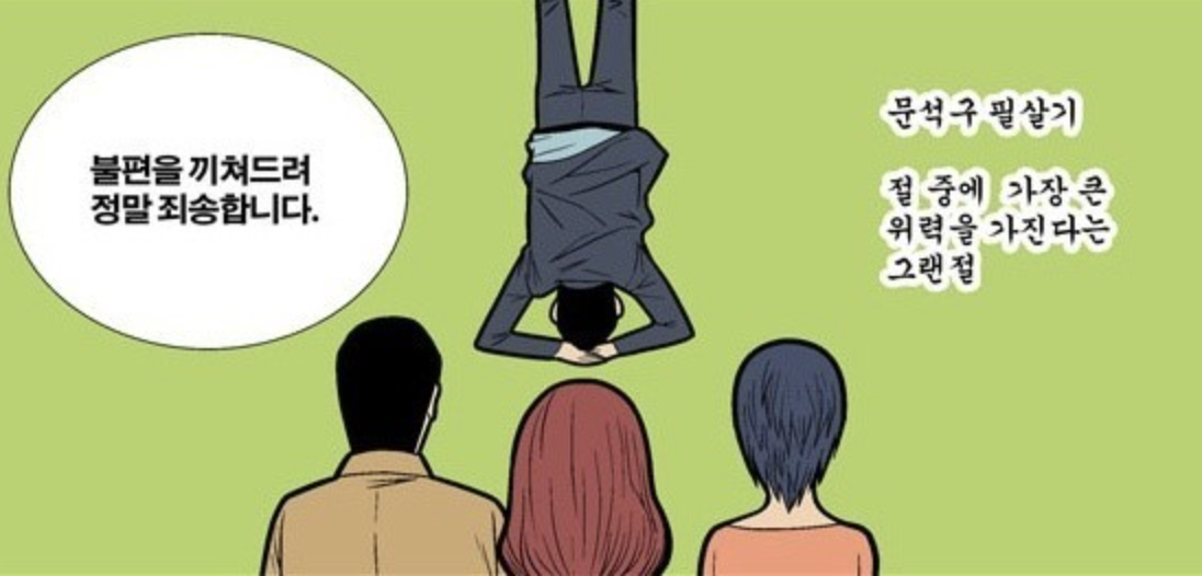 이런 절을 생각하는데 그랜절은 머리를 바닥에 물구나무서면서 올리는 절을 말한다.