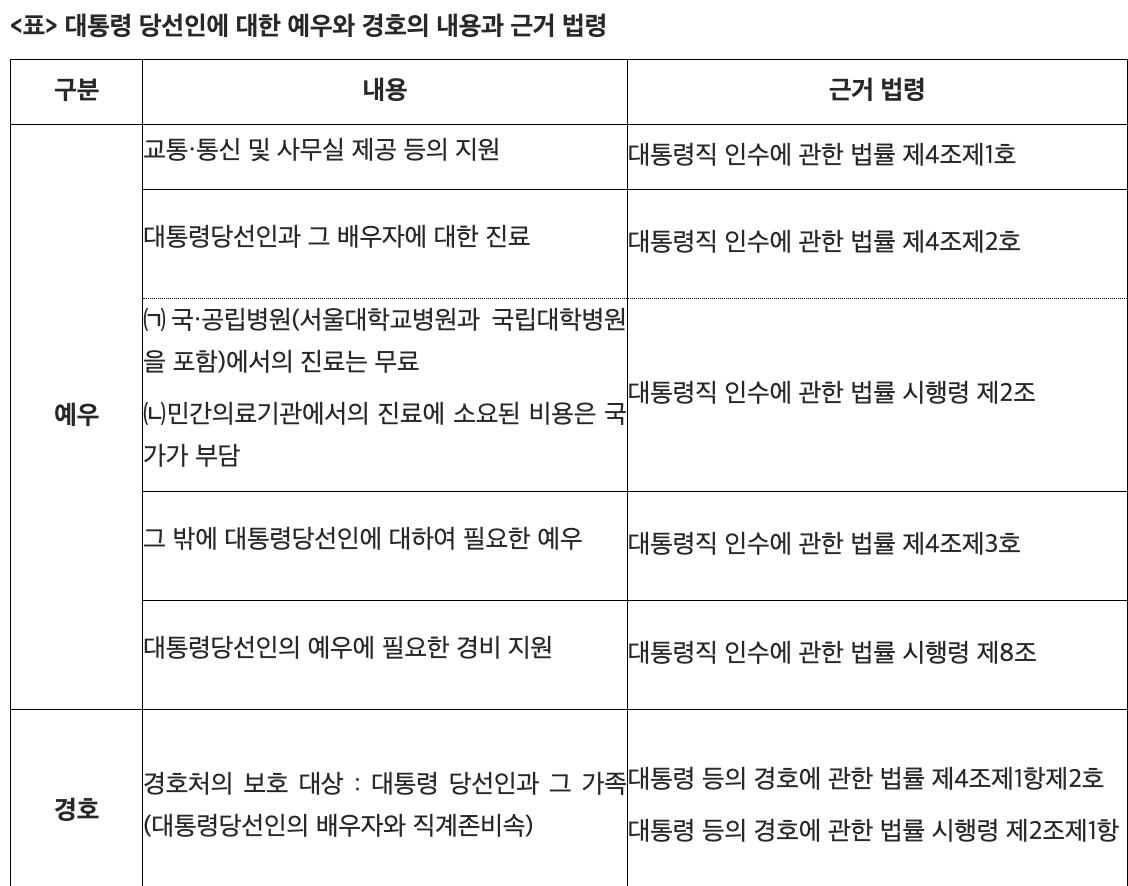이러한 당선인에 대한 예우는 법률로도 갖춰져있다.