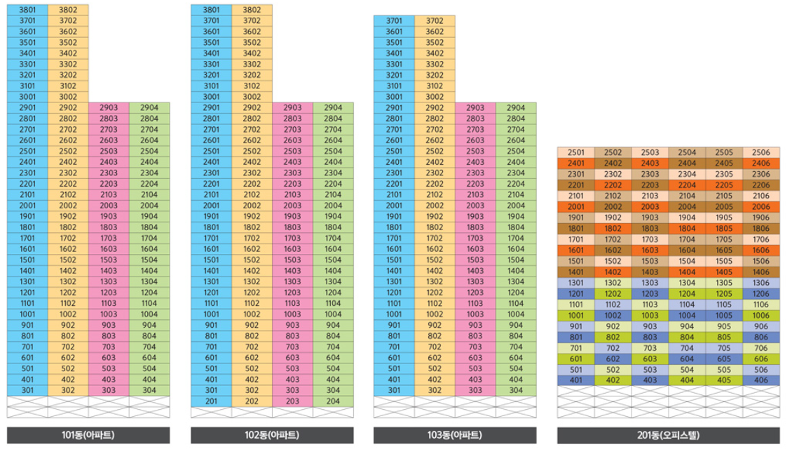 커뮤니티 센터로는 피트니스센터, 키즈센터, 실버센터가 있다. GX룸과 실내골프연습장도 함께 들어선다. 주변 시세보다 거의 절반 정도 되지만 거주의무가 5년인 점은 참고해야한다. 총 가구수는 380가구이다.