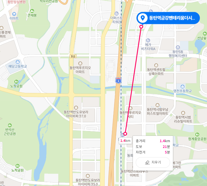 주변 입지로는 바로 동탄IC가 있다. 동탄에 살아보면 알겠지만 이 구간에 가까운 것은 이동에 정말 유리하다. 경부고속도로 뿐 아니라 제2외곽순환고속도로, 용인~서울고속도로도 자주 이용하게된다.
