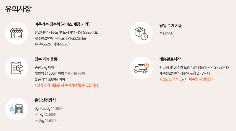 - 물품가액 50만원이상의 고가상품 접수 불가다.