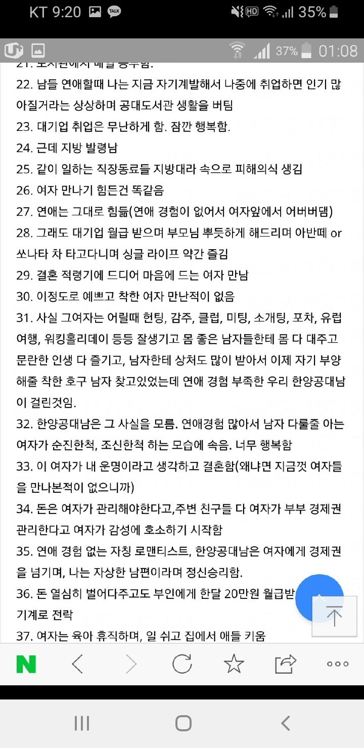 이 설거지론을 알고 있는 상태에서 아래 과거에 인터넷에 올라온 공대생 인생이라는 글을 보자.