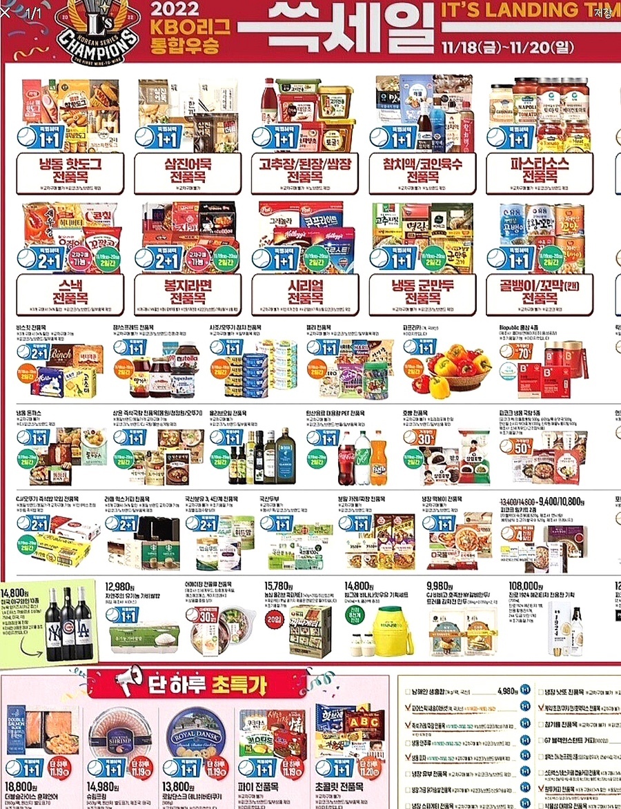 쓱세일은 11월 18일부터 20일까지 진행된다. 야구단 와이어투와이어 우승 기념으로 진행되는데 신세계온오프라인 19개 계열사가 참여하며 계란이 2판인데 9980원으로 큰 할인폭에 진행된다.