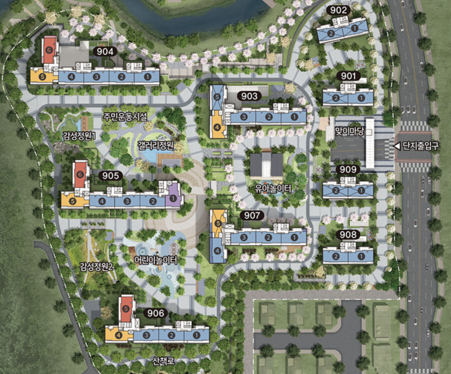 단지 바로 뒤의 군지산, 금정산과 다방천, 수변공원 등 전체 신도시 면적 중 약 30%의 녹지비율을 갖춰 쾌적하다.