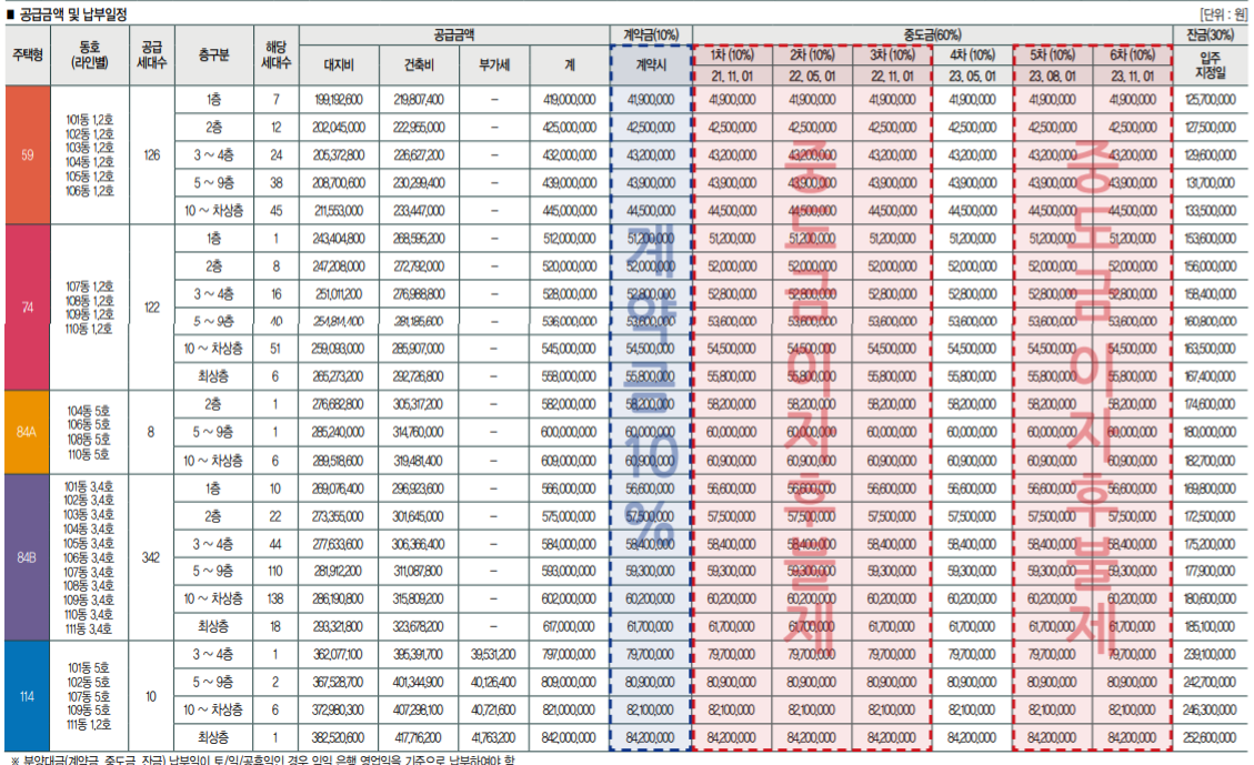 죽전역 에일린의 뜰 분양가(단위 만원) : 59 - 4억 1천~ 4천, 74 - 5억 1천 ~ 5억 5천, 84A - 5억 8천 ~ 6억, 84B - 5억 6천 ~ 6억 1천, 114 - 7억 9천 ~ 8억 4천