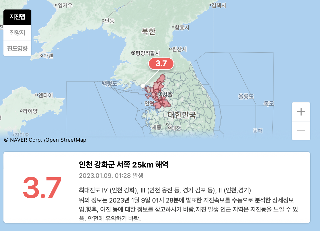 새벽에 인천 강화도에서 지진이 나며 잠을 깨웠습니다. 지진은 지각의 지하 이동으로 인해 땅이 흔들릴 때 발생하는 자연 재해입니다. 지진은 규모가 아주 작은 것부터 매우 큰 것까지 다양하며 건물 손상, 산사태, 쓰나미 등 다양한 문제를 일으킬 수 있습니다. 지진의 강도는 리히터 척도라는 1~9의 척도를 사용하여 측정합니다. 규모 7 이상의 지진은 대지진으로 간주되며 심각한 피해와 부상을 초래할 수 있습니다. 지진을 느끼면 안전한 장소를 찾아 몸을 피하는 등 몸을 지키는 것이 중요합니다. 건물 안에 있는 경우 창문에서 멀리 떨어져 실내에 머뭅니다. 밖에 있는 경우 건물, 나무, 전선에서 멀리 떨어진 열린 공간으로 이동합니다.