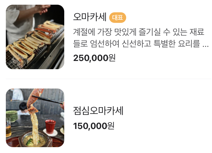 가매일식 : 광주 농성역 인근, 오마카세 6~10만원, 계절요리 5~12만원