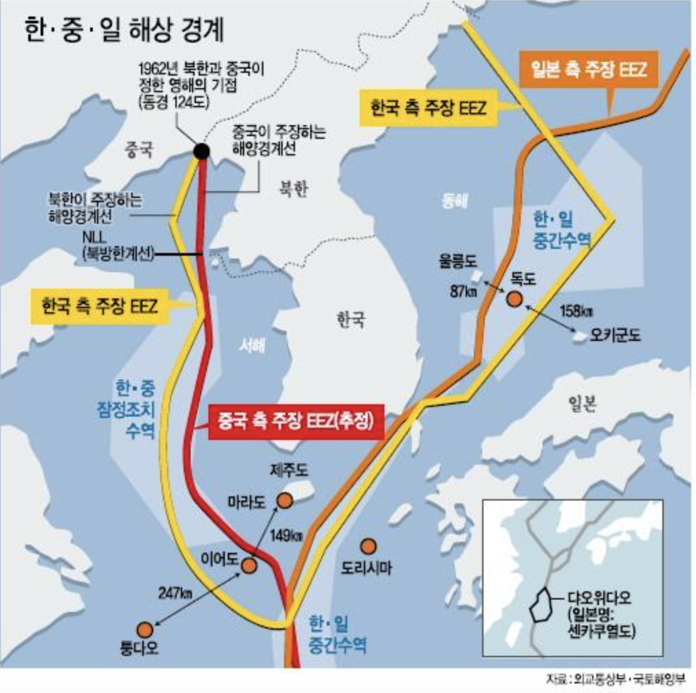 - 각 국이 주장하는 범위에 차이가 있을 수 있음