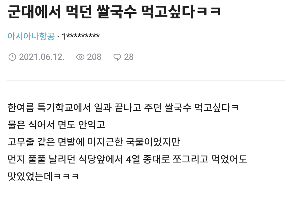 군대 쌀국수는 아직도 많은 군필자들에게 향기를 남기곤 한다.